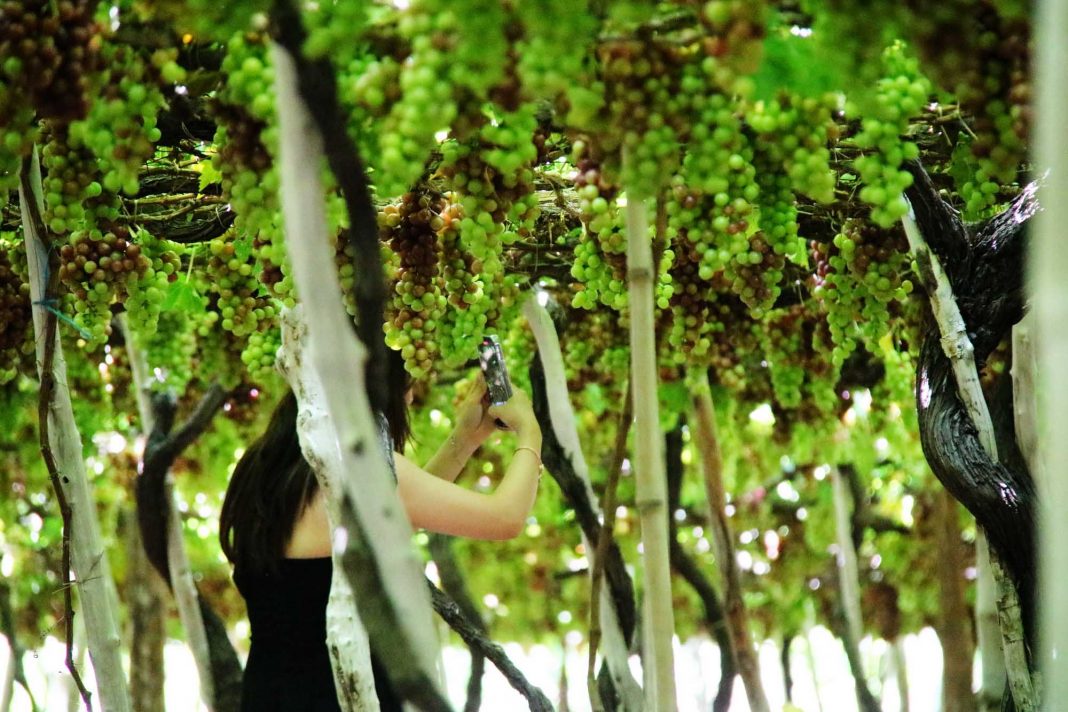 Có chiếc giỏ xinh xinh để sẵn, có cây kéo sắc bén, du khách đi vào chọn, lấy kéo cắt chùm nho bỏ vào giỏ, như người làm vườn thu hoạch. Giá nho tại vườn cao hơn ngoài chợ, nhưng chẳng ảnh hưởng gì với những người ghé qua, tận hưởng mùa nho chín.